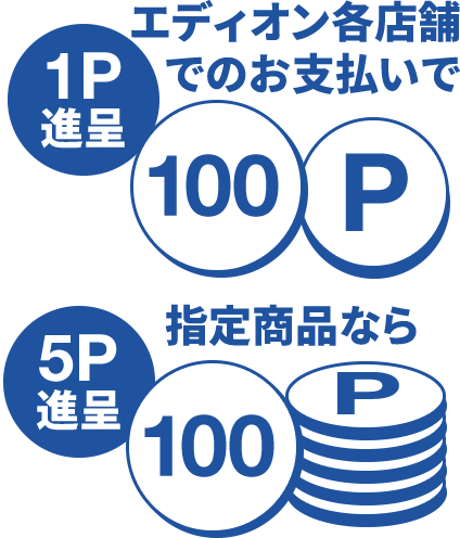 エディオン各店舗でのお支払いで100円につき1ポイント!さらに、当社指定商品なら、